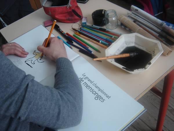 « Parfois, c'est difficile, entre l'idée et ce qu'on veut faire. Faire un dessin, ça demande de rater, de recommencer. Au début, il n'y a pas beaucoup de détails. Je fais un croquis , je cherche, je cherche. Je garde mes brouillons parce que parfois, dans mes premiers dessins, il y avait une idée ».